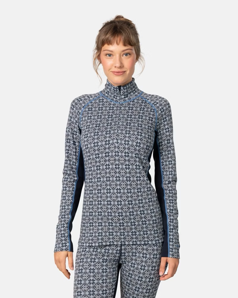 Kari Traa Rose Høyhalset Ulltrøye er ullundertøy i 100% merinoull i et nordisk-inspirert rosedesign. Ullttrøyen har en feminint snitt og har en tettsitende og sporty silhuett. Bærekraftig høstet ull og 4-veis stretch gjør dette baselayer- plagget berøringsmykt, lukthemmende og pustende. Glidelås i halsen gjør det lett å regulere temperaturen.