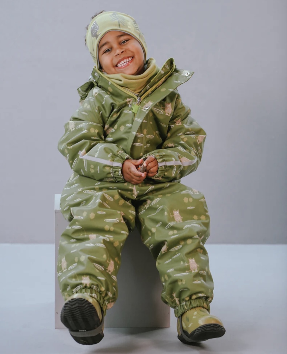 Modellene har på str. 104. Dressen er god i størrelsen, så mål barnet sin høgde og vel den størrelsen som ligg nærast! Det er ikkje behageleg for bornet å bruke for store klede. Då mistar dei sin bevegelsesfrihet når dei er ute og leikar, og plagget blir slitt feil.