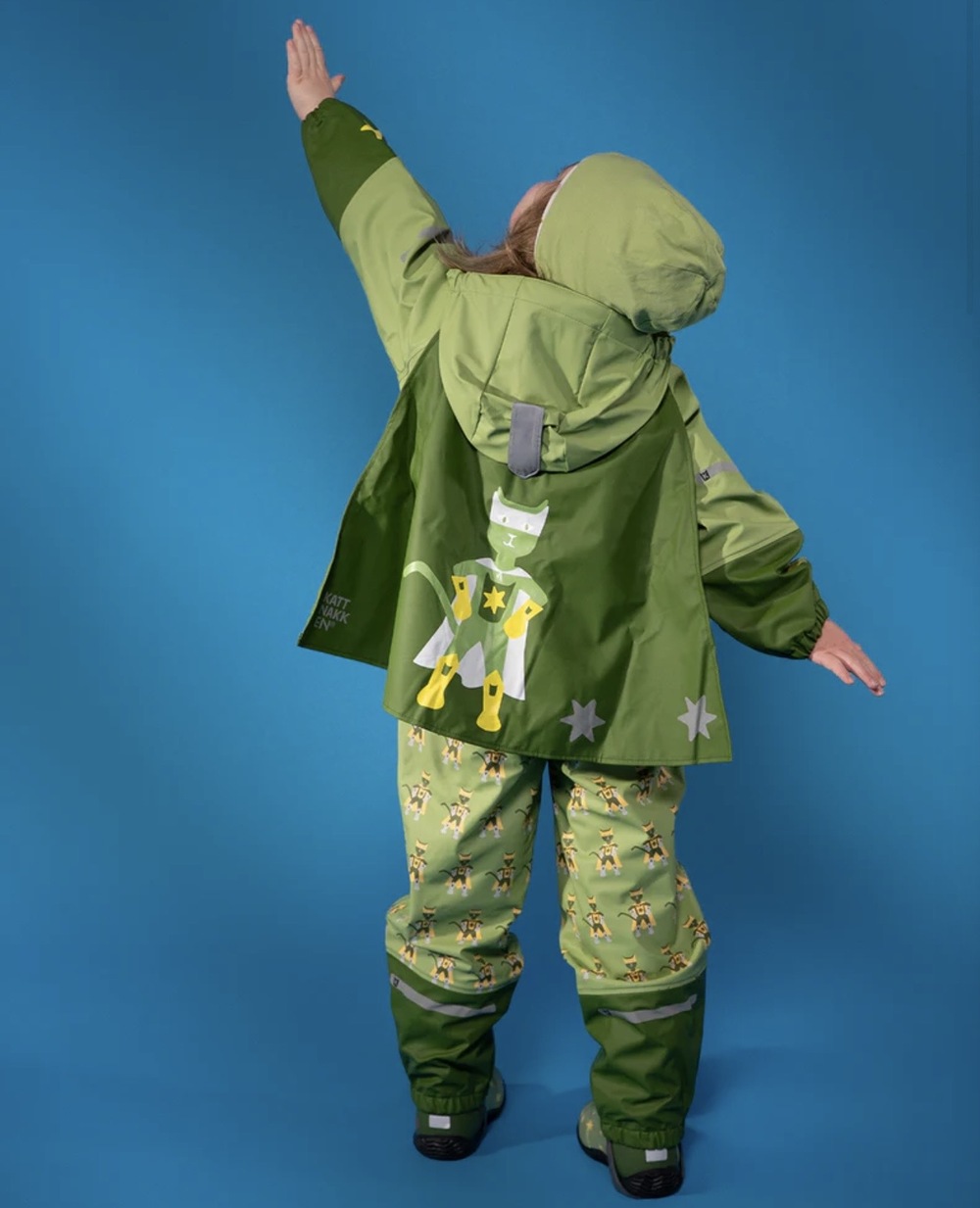 Nyheit! Regnsett Plask Superhelt kolleksjon "Superkatten 2026" - med eigen superheltkappe! Sjå kor stilig! Her blir det leik, fart og regnglede på sitt beste når dei små spring rundt som superheltar.
