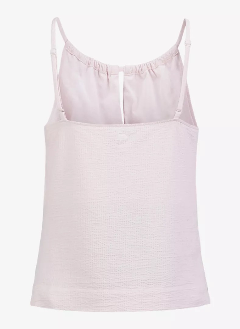 Et naturlig valg for varme sommerdager ved sjøen. Den flytende jacquardstrikkede blandingen av elastan og bomull gir en myk og lett følelse mot huden din. Med en fôret øvre del og justerbare skulderstropper, sikrer den komfort for alle kroppstyper. Den rynkede detaljen med splitt i halsen og et tverrbakdesign gir denne toppen en usedvanlig flatterende fasong. Enten den er gjemt inn i W Dock Skort for en figurnær passform eller bæres uopptrukket for en grasiøs silhuett i A-linje, eller sammen med kontrasterende shorts, tilbyr den allsidige og elegante stylingsalternativer.