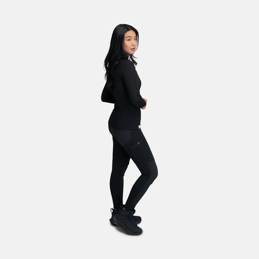 En turtights til dame fra Tufte, med fin passform og fôr av merinoull. Jepp, du hørte riktig! Passer utmerket til løpeturen på vinterstid, eller på tur på kjølige dager. Turtightsen er laget med en 2-lags konstruksjon, der utsiden er av resirkluert nylon og innsiden er av ullfleece. Dette er en tykkere og varmere tights til tur og fritid, med en isolerende innside som føles myk og behagelig mot huden.