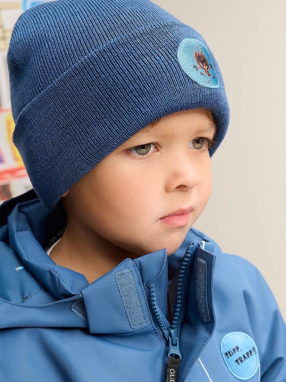 Hold små ører varme og eventyrlystne med vår ullue pyntet med en sjarmerende Bukkene Bruse-patch! Denne lua er strikket i en myk og varm merino ull miks, perfekt for kalde dager ute i naturen eller på vei til barnehagen og skolen.