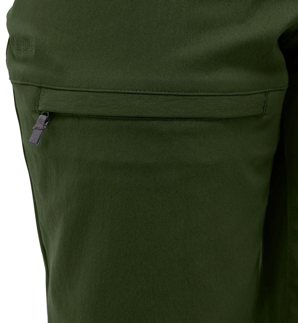 Tøffe og fleksible bukser for dagsturer, camping og langdistanseturer. Den er designet for å ha en allsidig rolle blant uteklærne dine. De er laget av en kombinasjon av to slitesterke materialer, strategisk konstruert med større fleksibilitet ved høye belastninger. En borrelåsjusterbar linning med belteløkker og justerbare benender gir tilpasset komfort. Den kommer med et sett med lommer og lårlommer med glidelås.