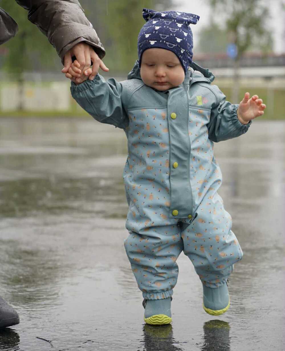Nyheit! Babyregndress Pytt – kolleksjon «Tolvmeterskogen 2025». Dressen har mjuk og lett PU-Knit i overkropp, i mens nedre del har slitesterk PU-ekstrem. I tillegg har den fått vanntett glidlås for ekstra beskyttelse mot sølepyttane. Vattert fór på 80 gram og passar perfekt på dagar med øs pøs regnvêr, hauststorm eller vinterslaps.