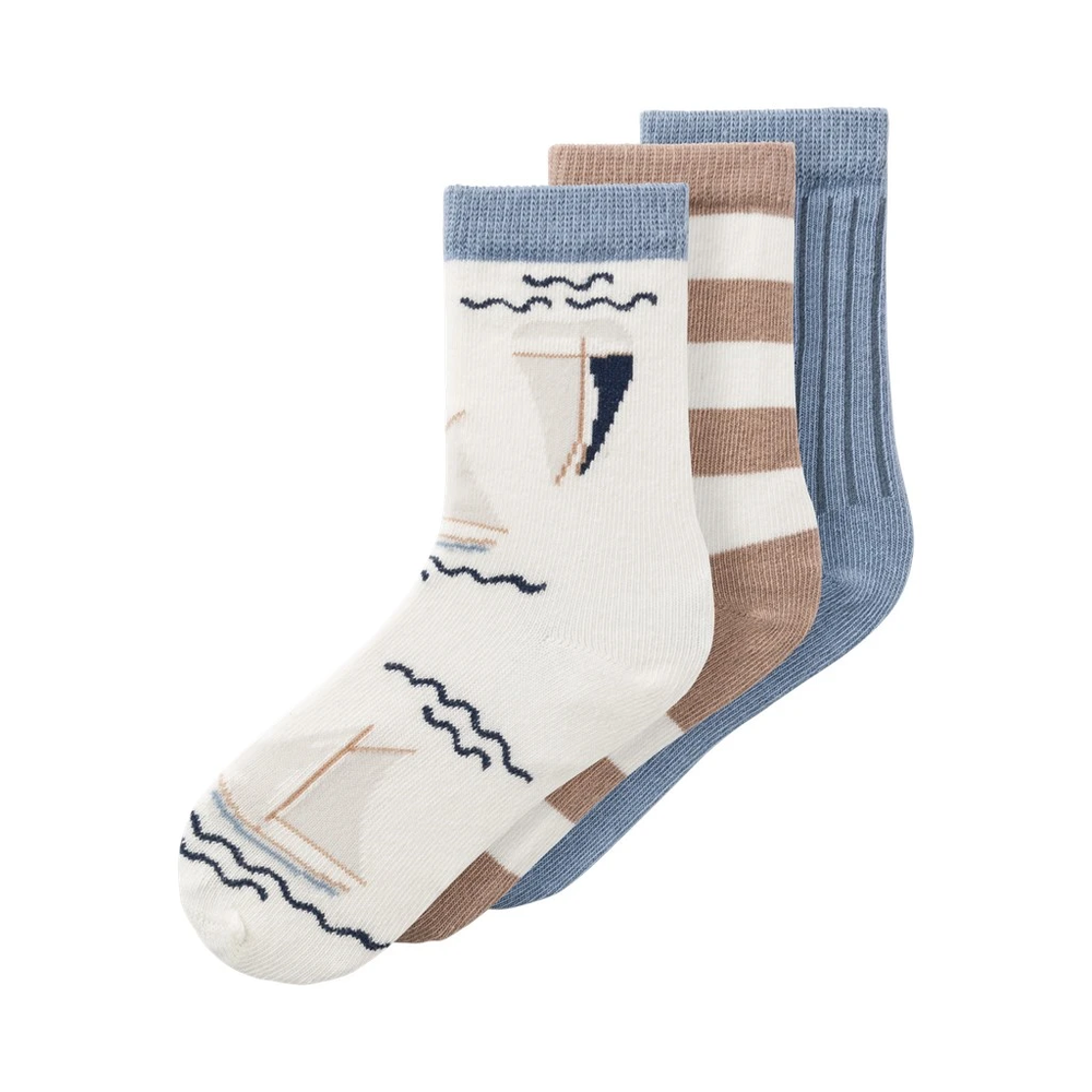 3-pack sokker i blå og beige nyanser.