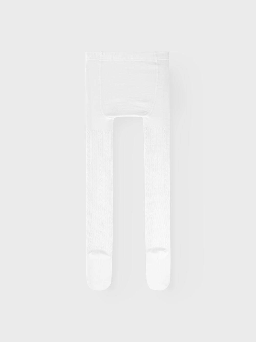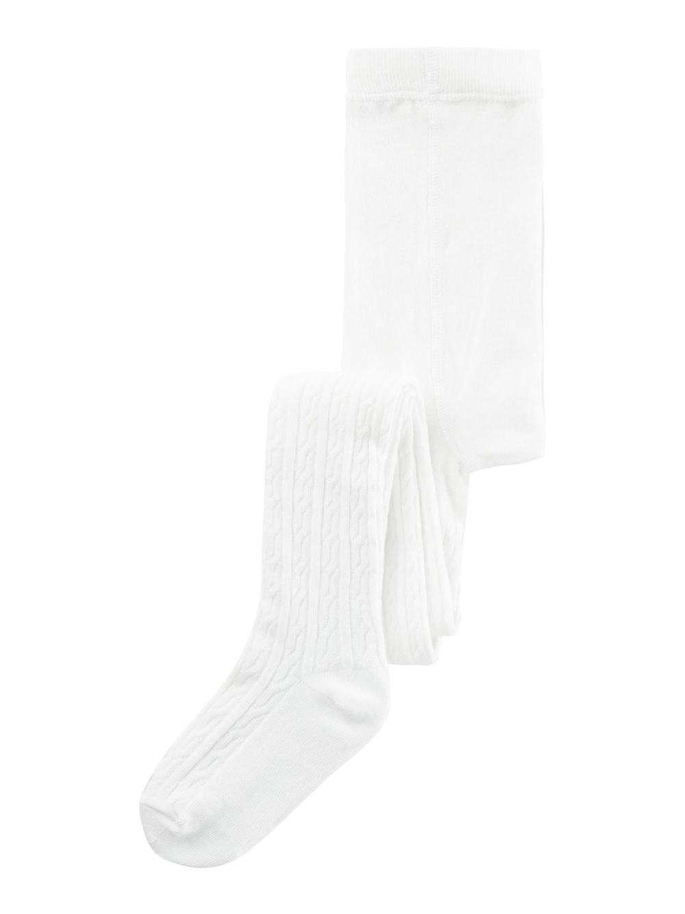 Hvit Klassisk strømpebukse i bomull med kabelstrikk på bena og ribbestrikket midje. Passer perfekt til festdrakt og barnebunad.