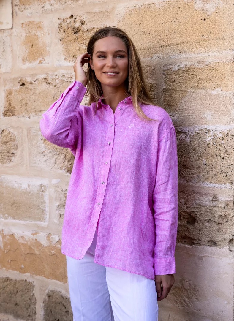 Linen Breeze-skjorten til Pelle P er laget av et mykt, luftig stoff laget av 100 % lin. Den oversized skjorten har en petite krage og fungerer like godt med et par jeans på kontoret som med et par shorts i havnen.