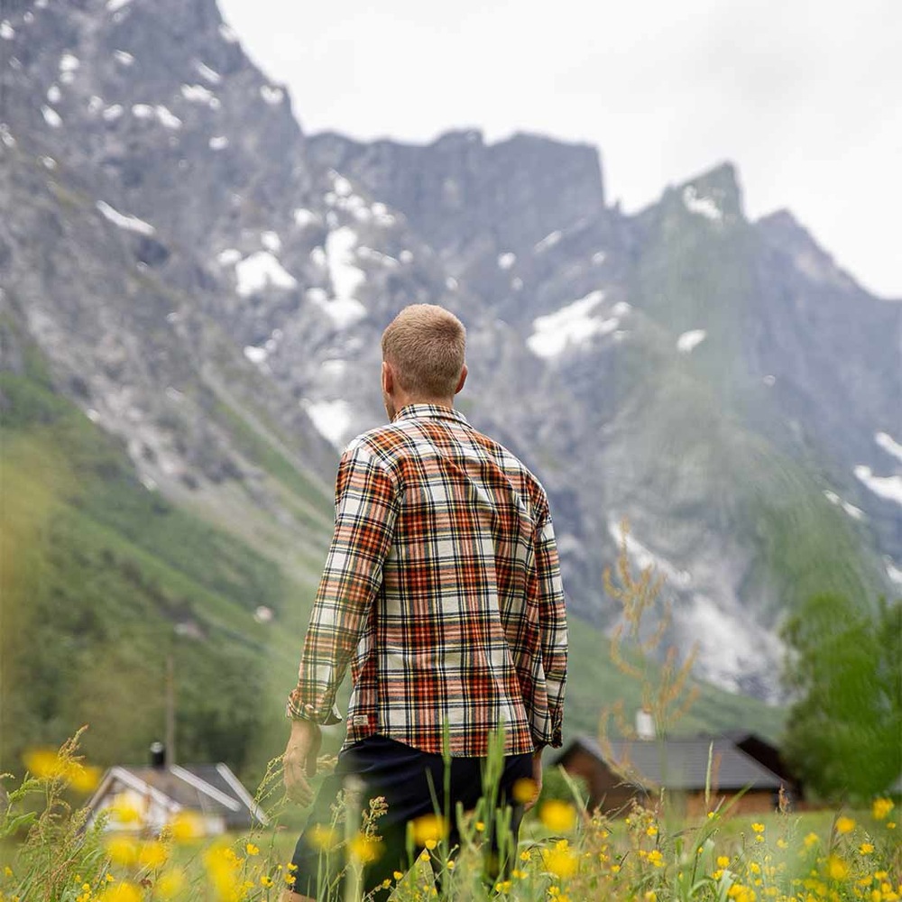 En anvendelig og komfortabel flanellskjorte av 100 % økologisk bomull. En utmerket turskjorte! Sleng den over en langermet ulltrøye på tur i skog og mark, eller over en T-skjorte når du skal på jobb – denne skjorten passer godt til det meste. Skjorten har knappeåpning i front, to brystlommer, knapper på ermene samt knapper på kragen slik at kragen beholder passformen. Den er lengre bak og har splitt på sidene og en liten logotag nederst på kanten.